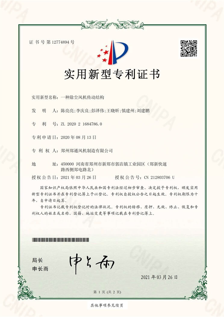鄭通風機主要產品包括:高壓風機、不銹鋼風機、消防排煙風機、防腐防爆風機、廚房排油煙風機、玻璃鋼風機、鍋爐引風機、軸流風機、柜式離心風機、鍋爐引風機,產品通過ISO9001、ISO14001、ISO45001國際標準化組織制定的質量管理體系認證,部分產品通過了3C認證和國家防爆電器產品質量監督檢驗中心認證。